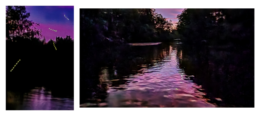 Fireflies are usually visible after dark, without any lighting around – peaceful, quiet environment along riverside.