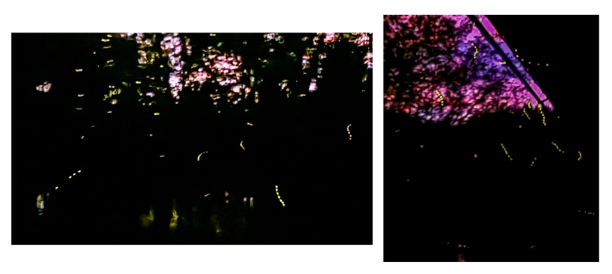 Attracted by flashlight, local guides usually wave torchlight in series of movements to attract fireflies towards boats.